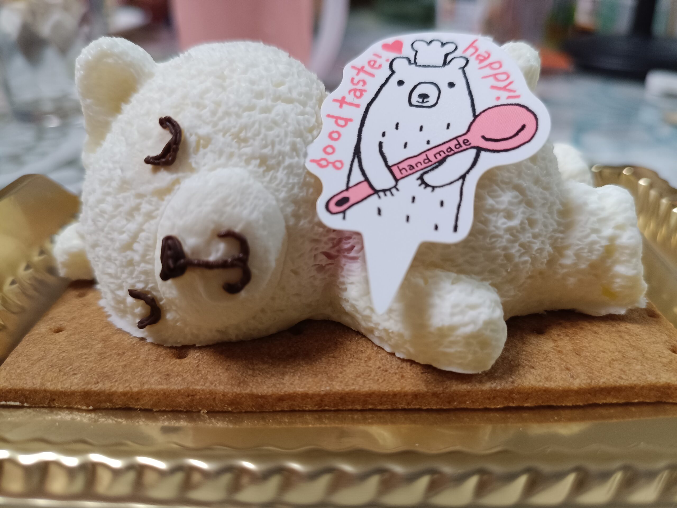 中にブルーベリーソースが入っている、レアチーズケーキ